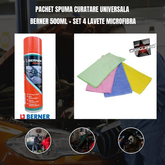 Pachet spuma curatare universala Berner 500ml + Set 4 lavete microfibra