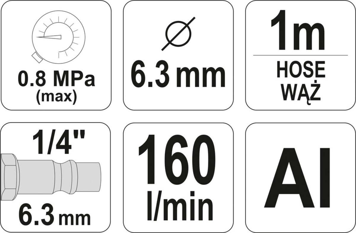 Pistol de sablare 6.3 mm cu furtun 100cm Yato YT-2375
