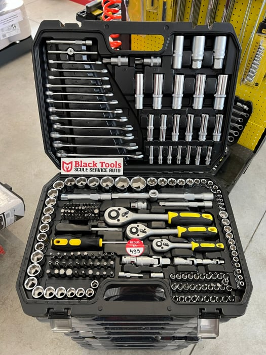 Black Tools Pachet trusa de scule 216 piese CR-V Topmaster Professional + Lanterna Frontala LED BONUS